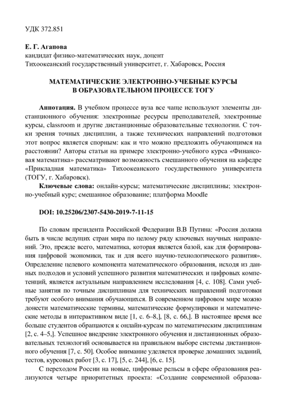 Агапова Е. Г., Попова Т. М., Лян Ю. Г. Онлайн-курсы по математическим дисциплинам // International Journal of Advanced Studies in Computer Engineering. 2019, № 1. С. 4-7. EDN: INEQDB