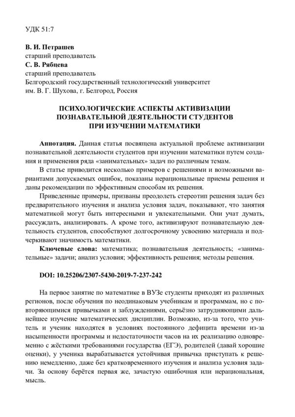 На первое занятие по математике в ВУЗе студенты приходят из различных регионов, после обучения по неодинаковым учебникам и программам, но с повторяющимися привычками и заблуждениями, серьёзно затрудняющими дальнейшее изучение математических дисциплин. Возможно, из-за того, что учитель и ученик находятся в условиях постоянного дефицита времени из-за насыщенности программы и недостаточности часов на их реализацию одновременно с жёсткими требованиями государства (ЕГЭ), родителей (давай хорошие оценки), у ученика вырабатывается устойчивая привычка приступать к решению немедленно, даже без кратковременного изучения и анализа условия задачи. За основу берётся первая же, зачастую ошибочная или нерациональная, мысль.