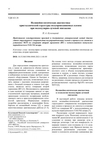 Нелинейно-оптическая диагностика кристаллической структуры полупроводниковых пленок при молекулярно-лучевой эпитаксии 44
