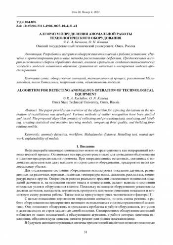 Дьяконов, А. Г. Выявление аномалий в работе механизмов методами машинного обучения // Аналитика и управление данными в областях с интенсивным использованием данных: сб. науч. тр. XIX Междунар. конф., 10-13 окт. 2017 г. / Федер. исслед. центр “Информатика и управление” РАН. Москва, 2017. С. 469-476. EDN: OUGRUW
