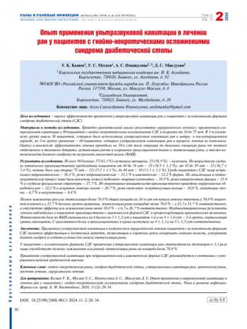 Цель исследования – оценка эффективности применения ультразвуковой кавитации ран у пациентов с осложненными формами синдрома диабетической стопы (СДС).