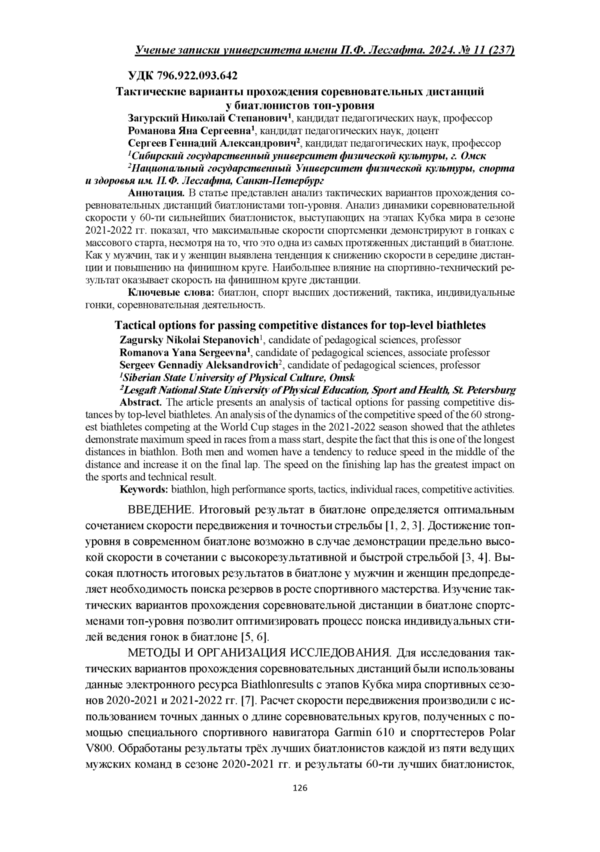 Загурский Н. С., Романова Я. С., Кашкаров Ю. Ф., Сергеев Г. А. Анализ выступления российских биатлонистов в спортивном сезоне 2019-2020 и на чемпионате мира по биатлону 2020 в г. Антхольц (Италия) // Современная система спортивной подготовки в биатлоне: материалы VIII Всерос. науч.-практ. конф., (Омск, 8 октября 2020 г.). Омск, 2020. С. 38-49. EDN: QWHFNP