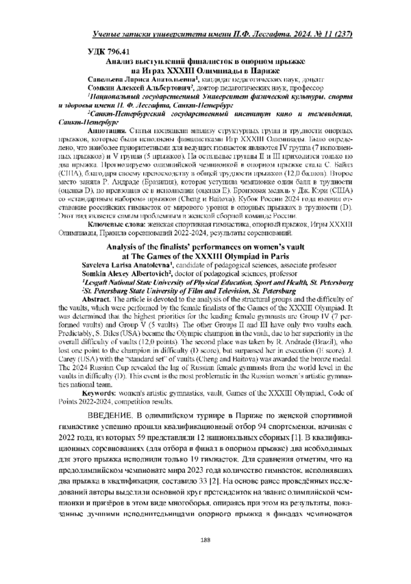 Статья посвящена анализу структурных групп и трудности опорных прыжков, которые были исполнены финалистками Игр XXXIII Олимпиады.