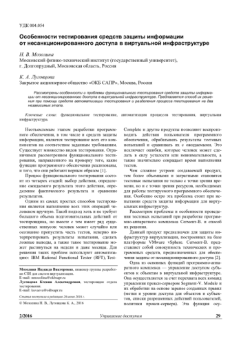 3. Каннер (Борисова) Т. М., Кузнецов А. В., Обломова А. И. Тестирование средств защиты информации. Информационная безопасность. Материалы XIII Международной конференции. Таганрог, 2013. Ч. 1. С. 121-129.