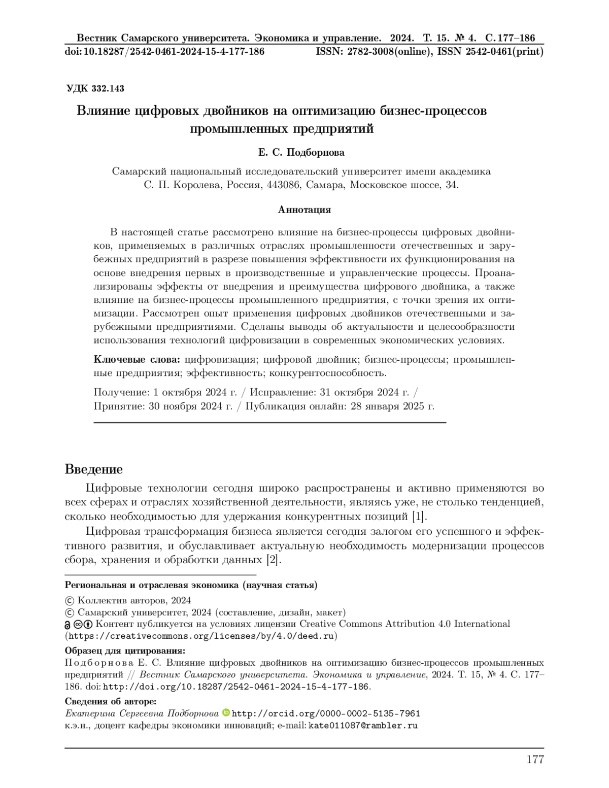 - Габитова Г.Ф., Хватова Т.Ю. Цифровой двойник как основа инновационного развития малых и средних предприятий автомобильной промышленности на примере Германии и России // Бизнес. Образование. Право. – 2020. – № 3 (52). – С. 132–138. EDN: CAKLIE.