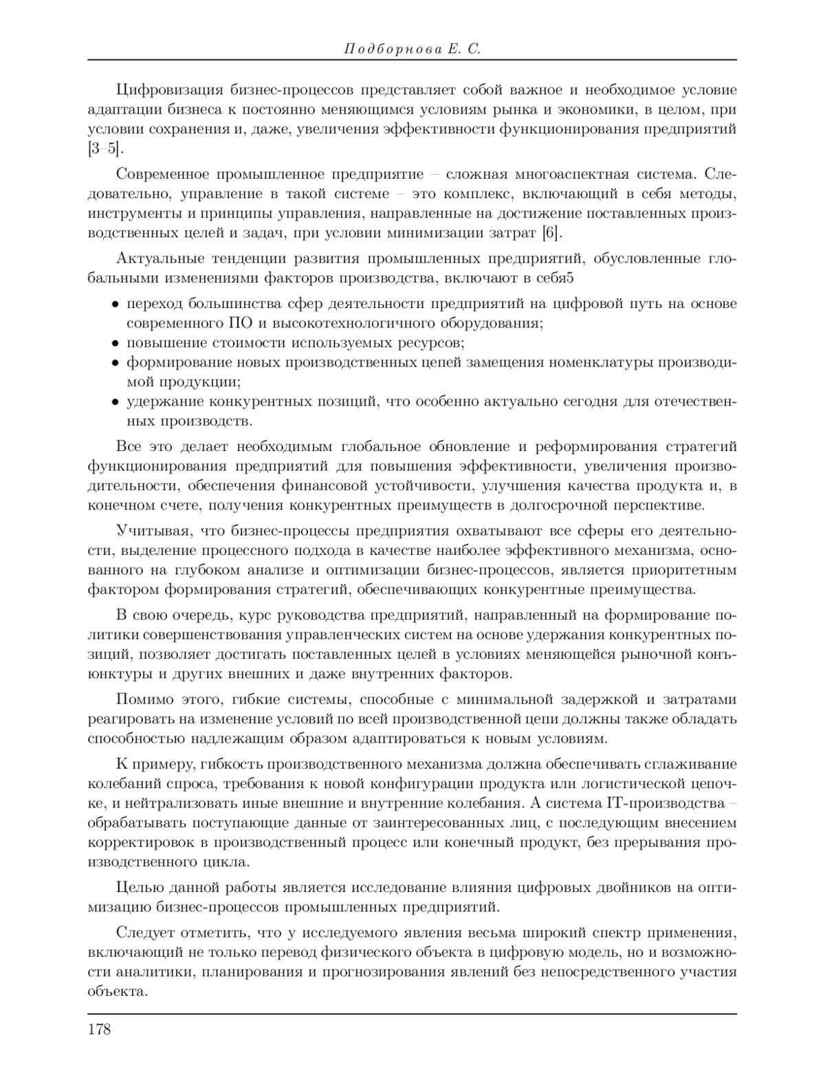 Цифровизация бизнес-процессов представляет собой важное и необходимое условие адаптации бизнеса к постоянно меняющимся условиям рынка и экономики, в целом, при условии сохранения и, даже, увеличения эффективности функционирования предприятий [3–5].