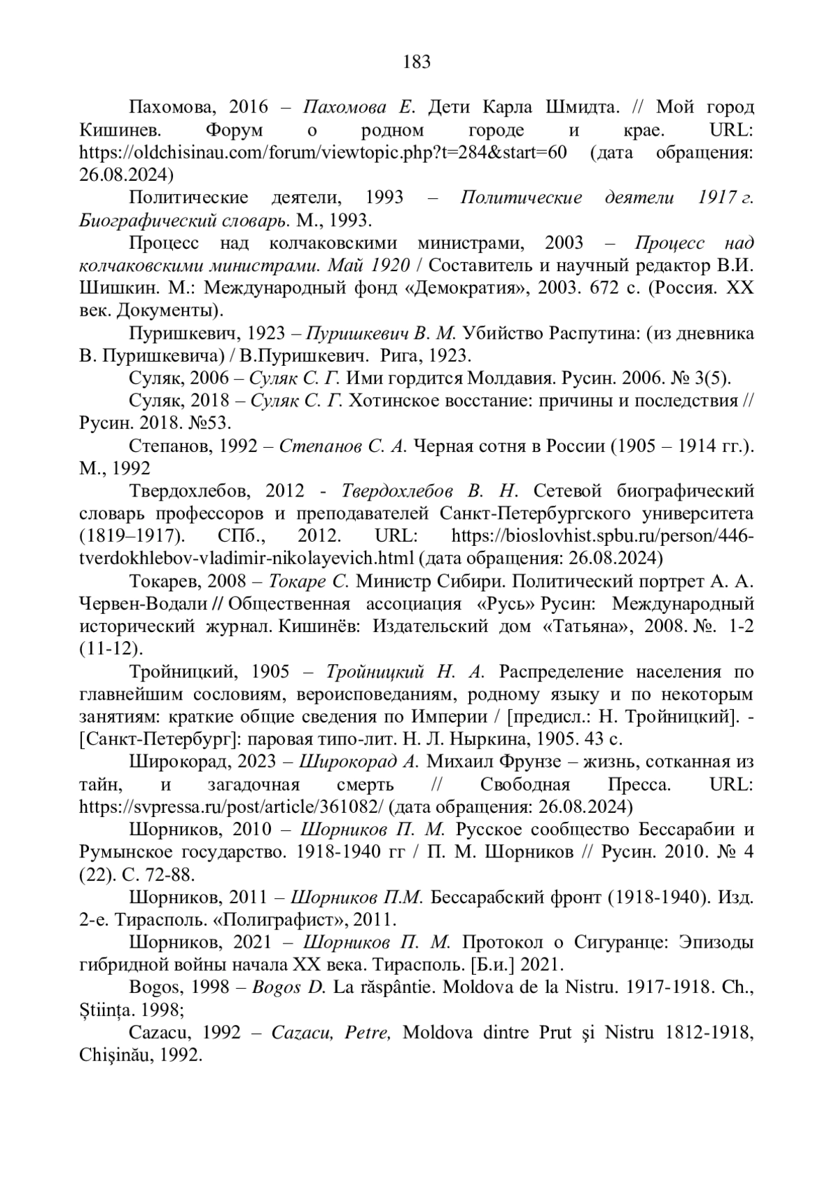 22. Шорников, 2010 - Шорников П. М. Русское сообщество Бессарабии и Румынское государство. 1918-1940 гг / П. М. Шорников // Русин. 2010. № 4 (22). С. 72-88. EDN: NCMSCH