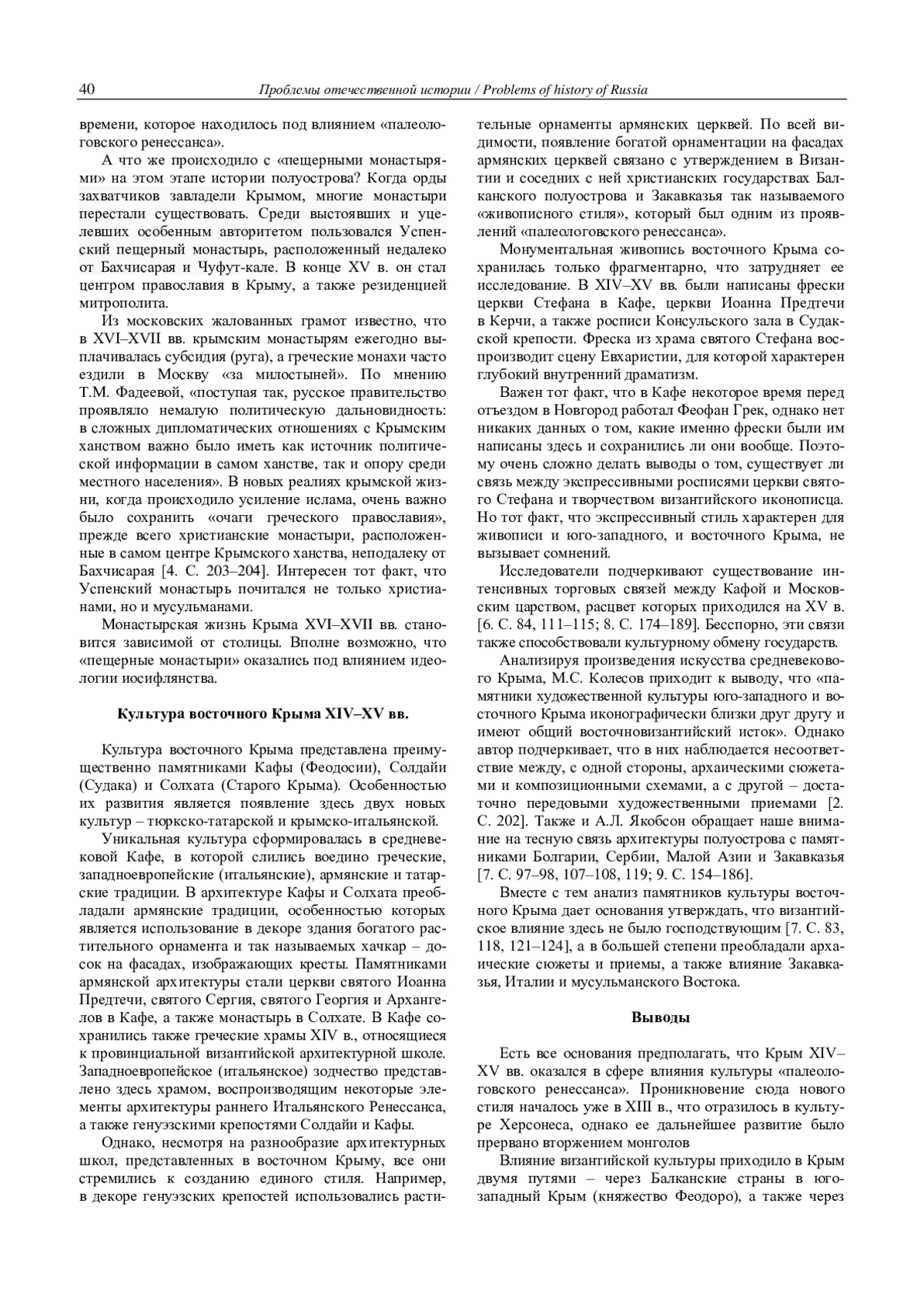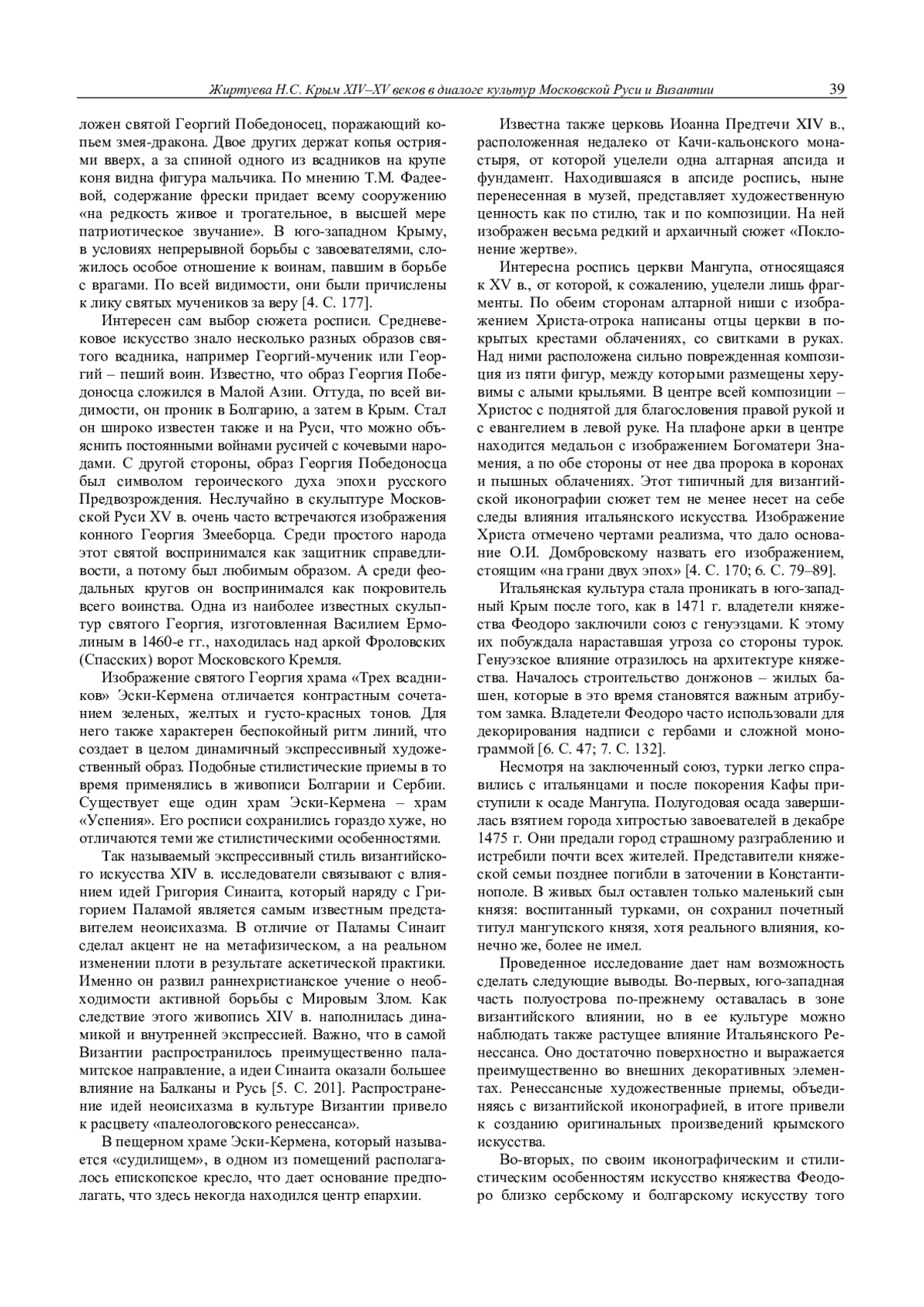 Цель статьи - анализ роли средневекового Крыма в диалоге культур Руси и Византии в XIV-XV вв. Можно выделить два пути влияния византийской культуры на Крым - через Балканские страны (юго-западный Крым) и через Закавказье (восточный Крым). Юго-западный Крым оказался в большей степени подвержен влиянию «палеологовского ренессанса». Сюда проникают идеи исихазма в виде учения Григория Синаита. Но если в IX-XII вв. Крым играл активную роль транслятора идей христианства в культуру Киевской Руси, то в XIVXV вв. культурная жизнь Крыма становится все более зависимой от Московской Руси. Автор заявляет об отсутствии конфликта интересов.