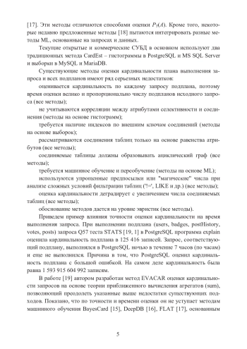 7. Kiefer M. et al. Estimating join selectivities using bandwidth-optimized kernel density models // Proceedings of the VLDB Endowment. - 2017. - Vol. 10, N. 13. - P. 2085-2096.
