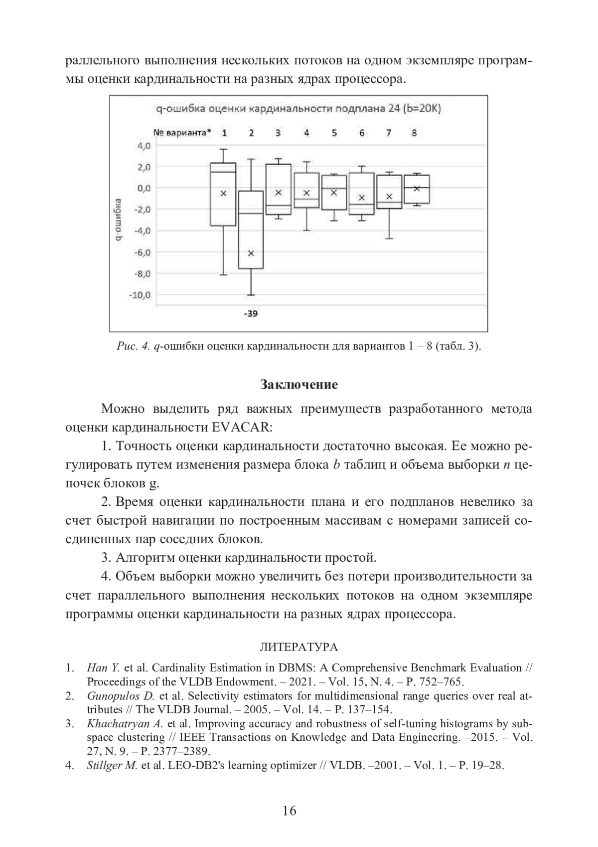 1. Han Y. et al. Cardinality Estimation in DBMS: A Comprehensive Benchmark Evaluation // Proceedings of the VLDB Endowment. - 2021. - Vol. 15, N. 4. - P. 752-765. EDN: TUHLSF