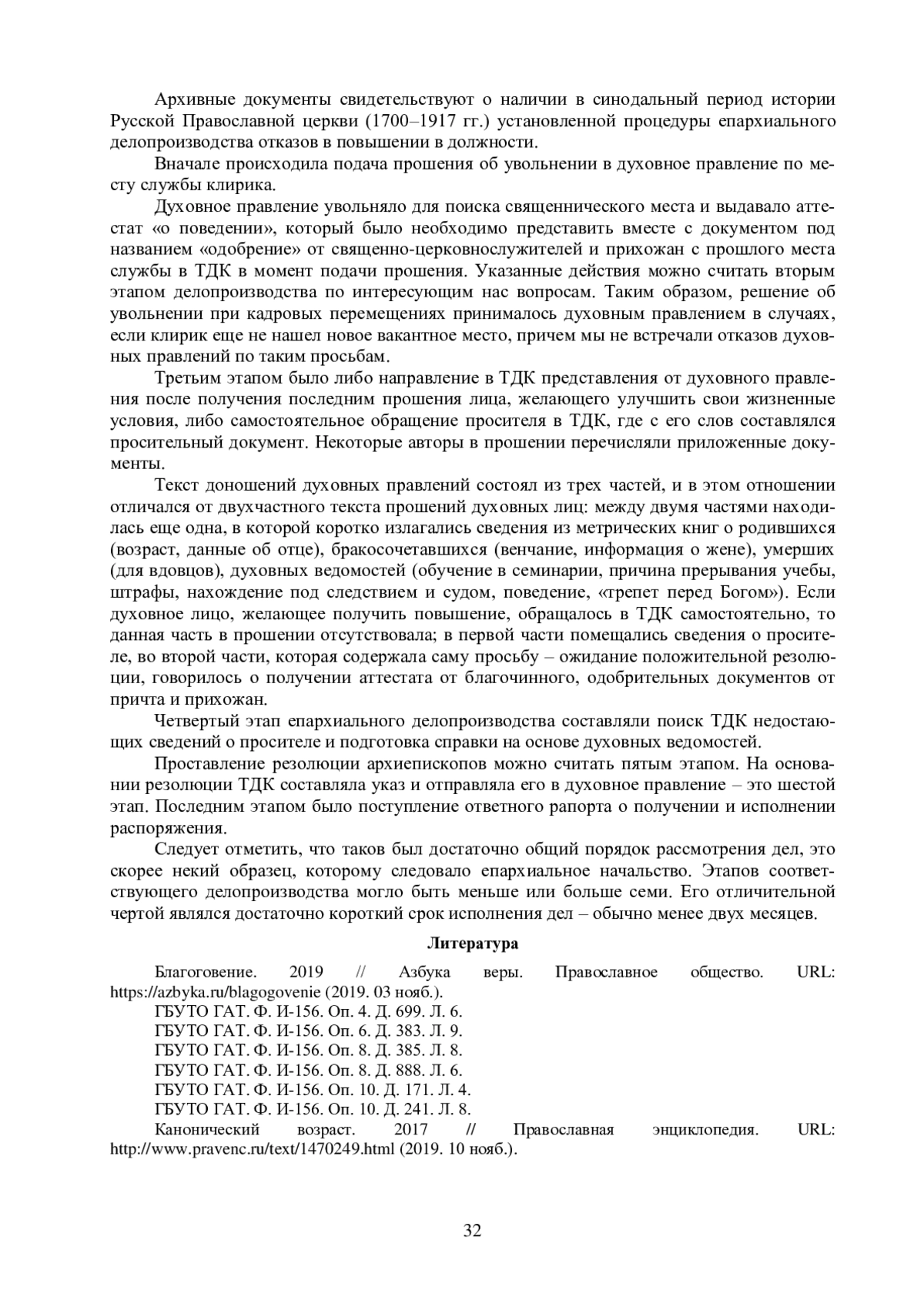 10. Спичак А. В. 2017. Документальное оформление назначения на должность священника (по материалам Спасской церкви с. Шеркальского Березовского уезда) // Вестник угроведения 2 (29), 127-135. EDN: YUPUTV