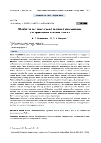 Цель исследования. Цель данного исследования - решение задачи восстановления внешней нагрузки на стоечно-балочную конструктивную систему и оценка влияния на точность решения задачи погрешности зашумленных прогибов - конструктивных входных данных вычислительной системы.