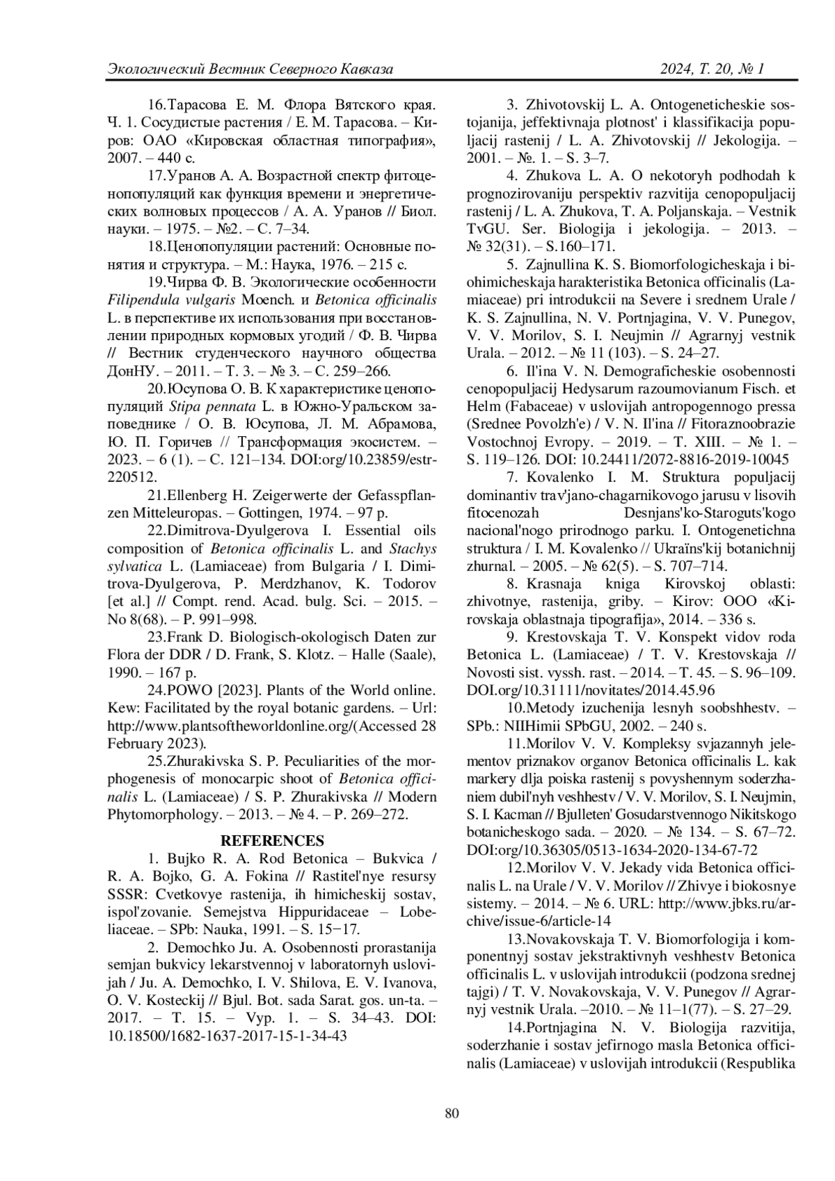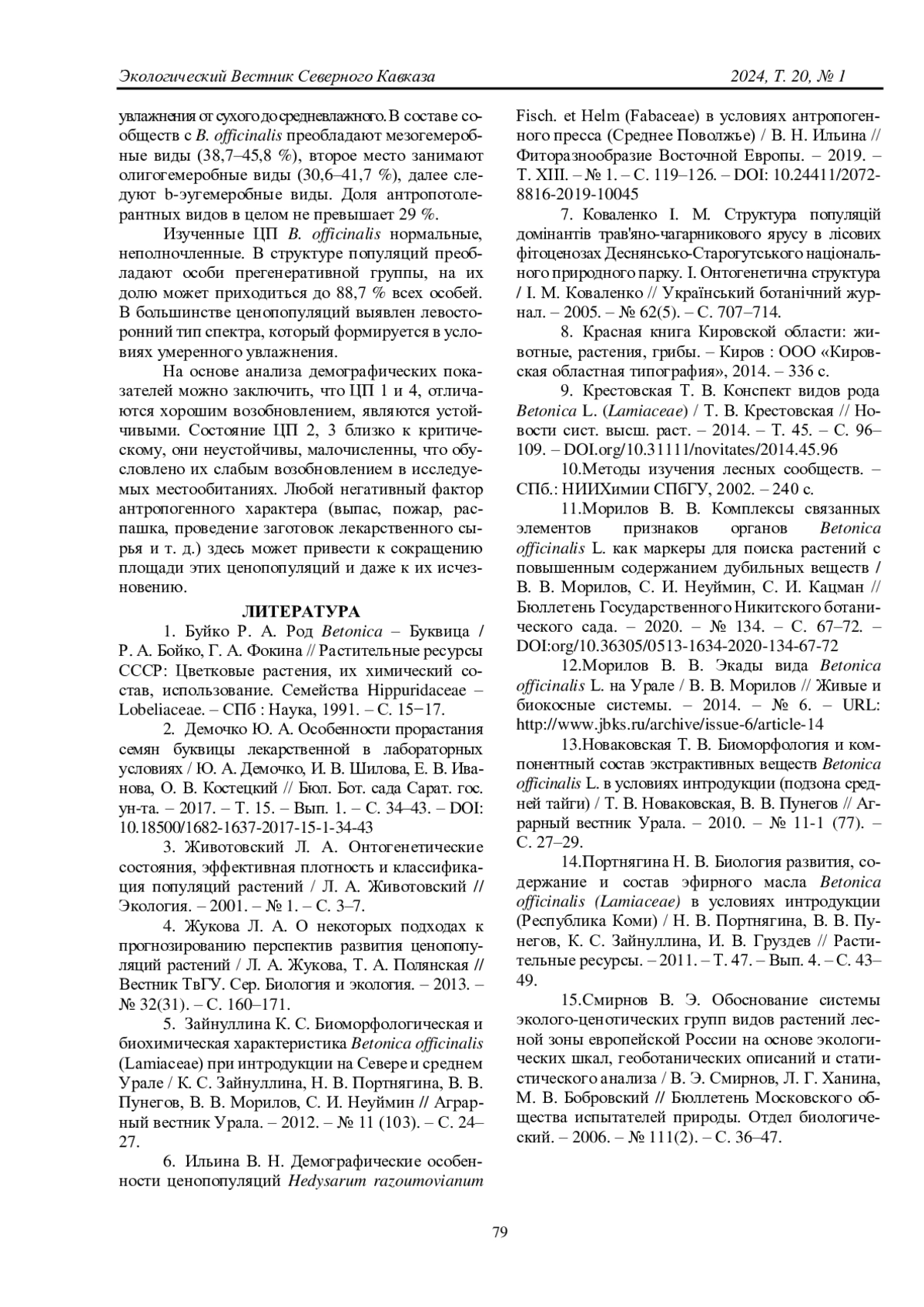 12. Морилов В. В. Экады вида Betonica officinalis L. на Урале / В. В. Морилов // Живые и биокосные системы. - 2014. - № 6. - URL: http://www.jbks.ru/archive/issue-6/article-14. EDN: UYNBKB