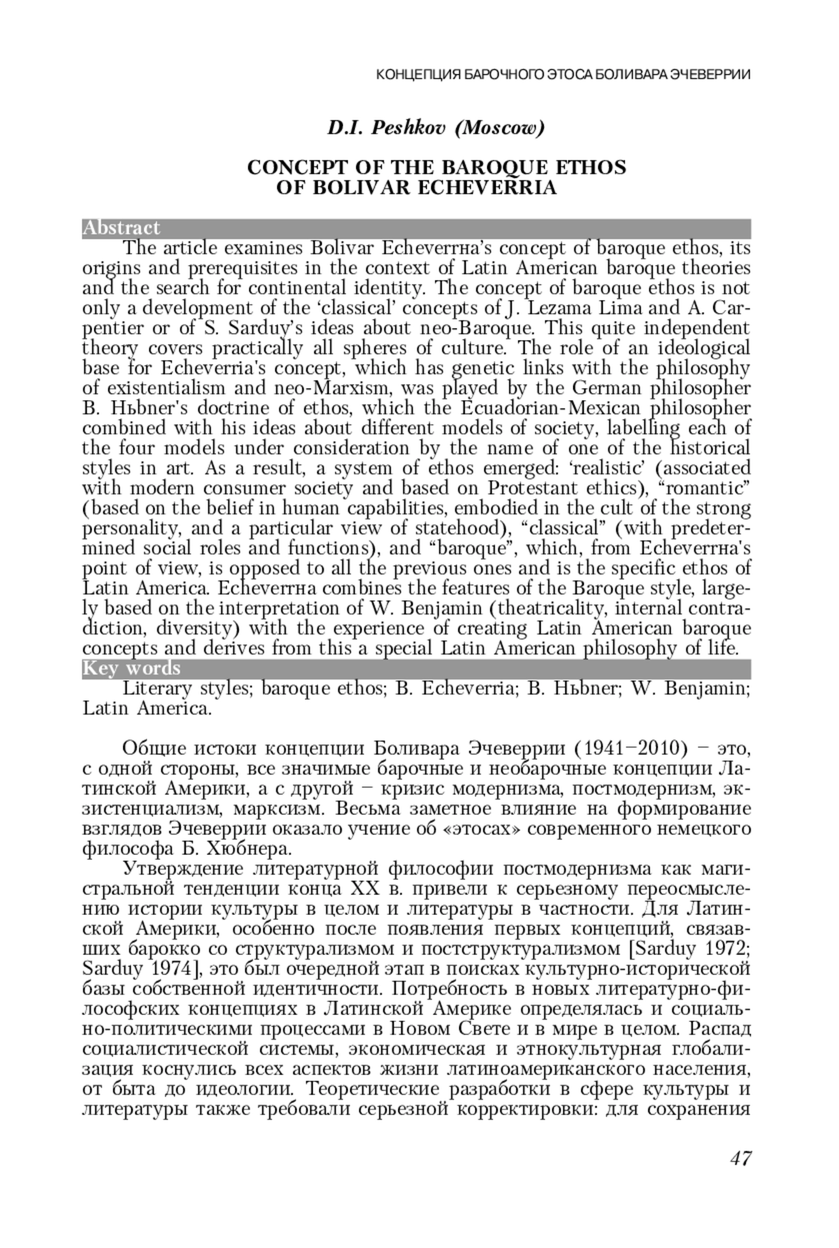 Ключевые фразы: литературные стили, барочный этос, б эчеверрия, б хюбнер, в беньямин, ЛАТИНСКАЯ АМЕРИКА