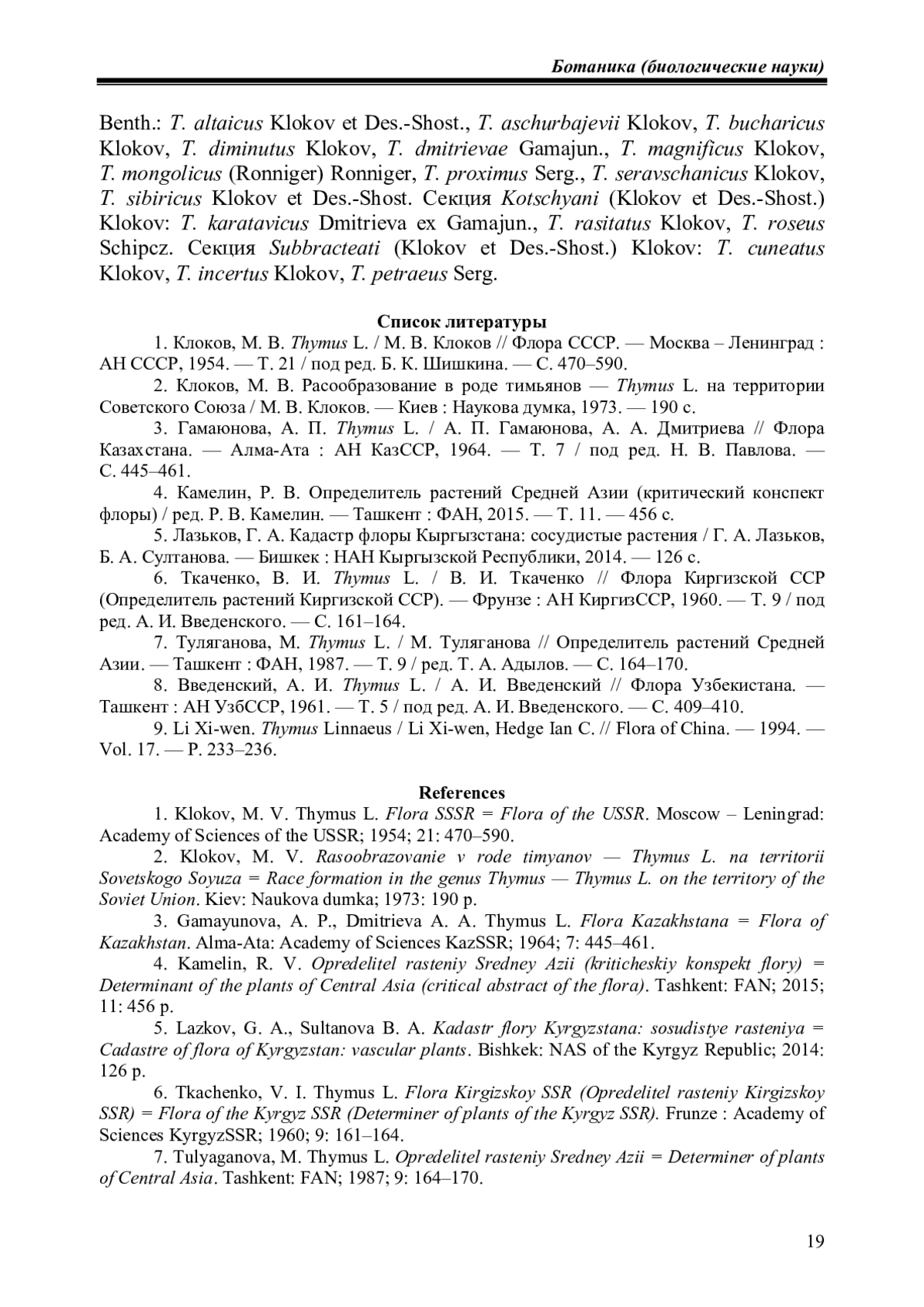 Ключевые фразы: thymus, южный казахстан, северо-западный китай, КИРГИЗИЯ, Узбекистан