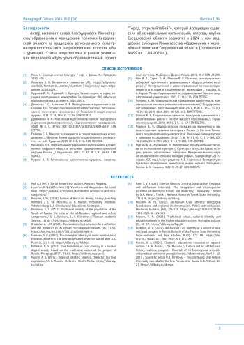 [7] Михалкин Н. В. Формирование гражданской идентичности в современном цифровом обществе на основе традиционных ценностей народов России // Педагогика. 2023. Т. 87, № 7. С. 55-62. EDN SQAVCL.