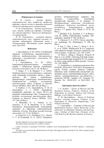 4. Сачков И.Н., Огородникова О.М., Огородников И.И. Деградация контактных материалов на основе Pd-Cu при протекании электрического тока // Фундаментальные проблемы современного материаловедения. 2024. Т. 21, № 3. С. 337-344. EDN: SIWNOV