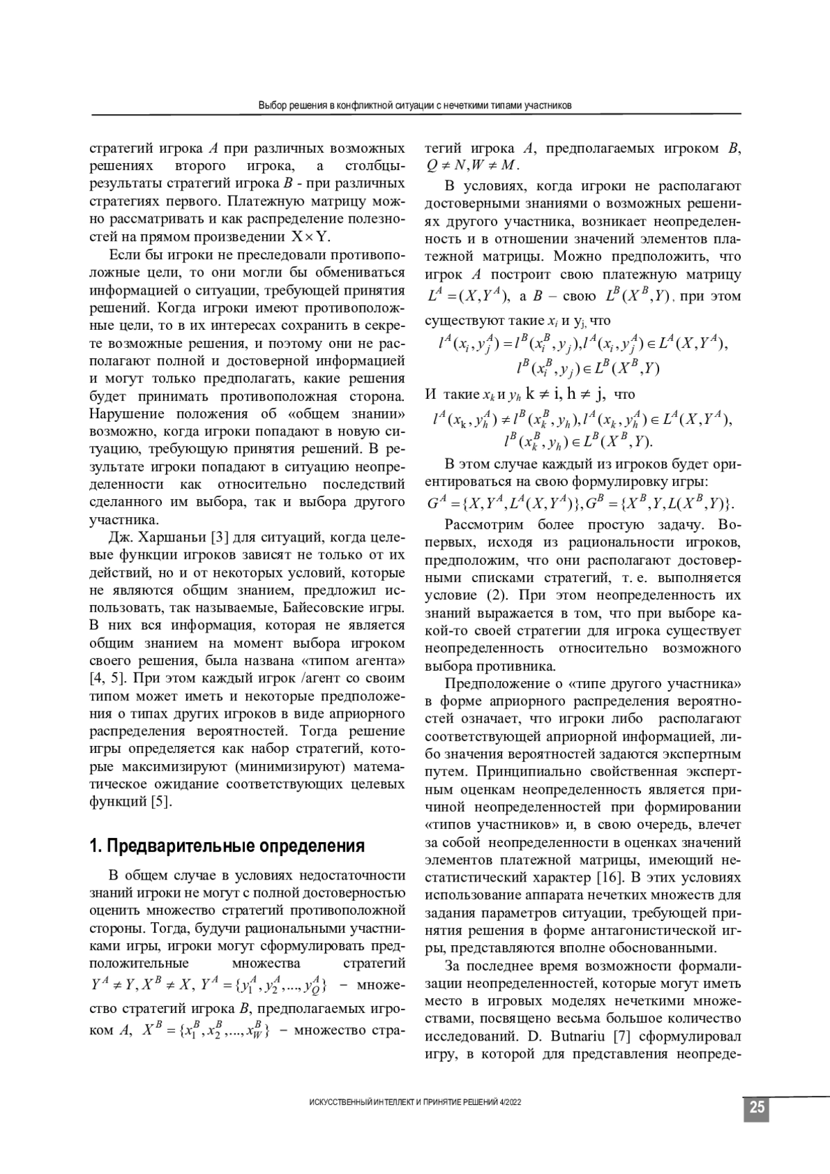19. Чернов В.Г. Выбор решения на основе нечеткой игры с природой // Прикладная информатика. 2021. Т.16. №2(92). С.131-143. EDN: KQDDLI