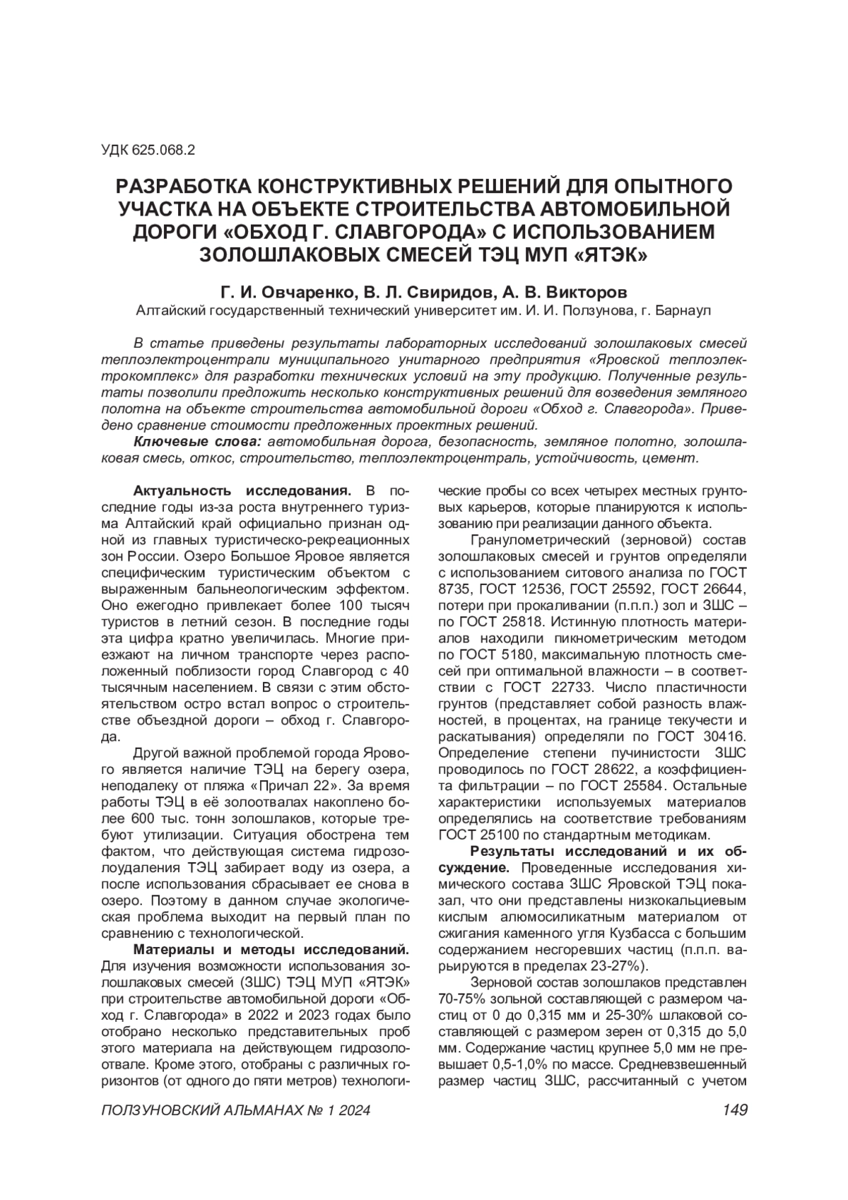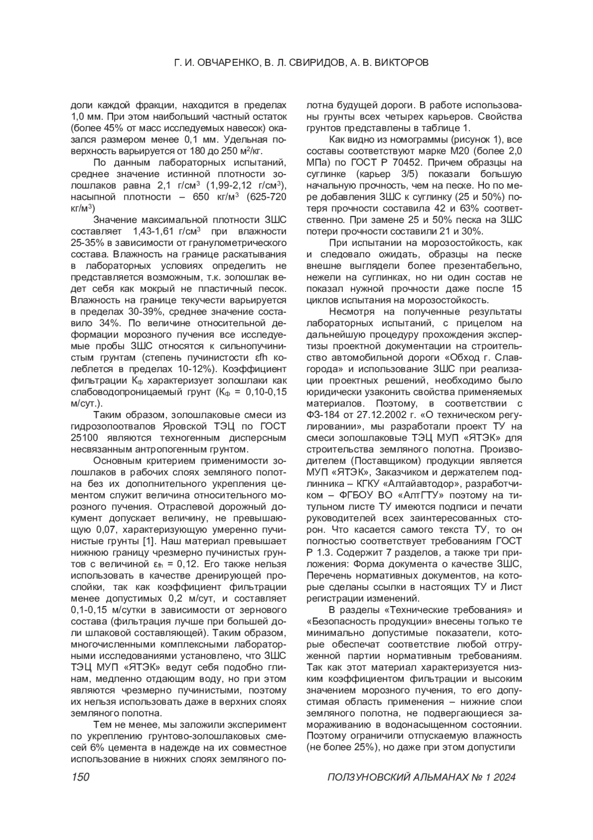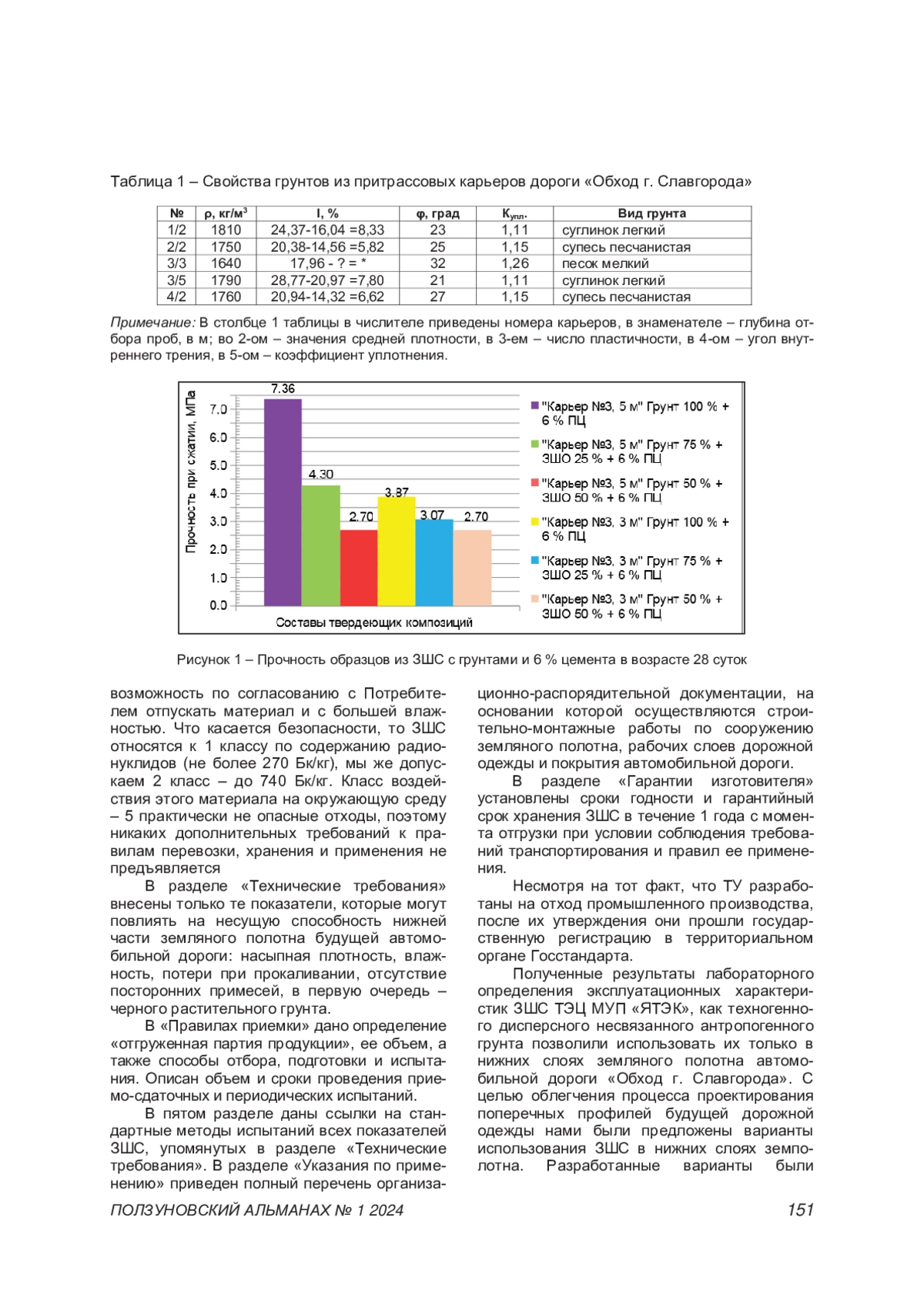 В статье приведены результаты лабораторных исследований золошлаковых смесей теплоэлектроцентрали муниципального унитарного предприятия «Яровской теплоэлектрокомплекс» для разработки технических условий на эту продукцию. Полученные результаты позволили предложить несколько конструктивных решений для возведения земляного полотна на объекте строительства автомобильной дороги «Обход г. Славгорода». Приведено сравнение стоимости предложенных проектных решений.