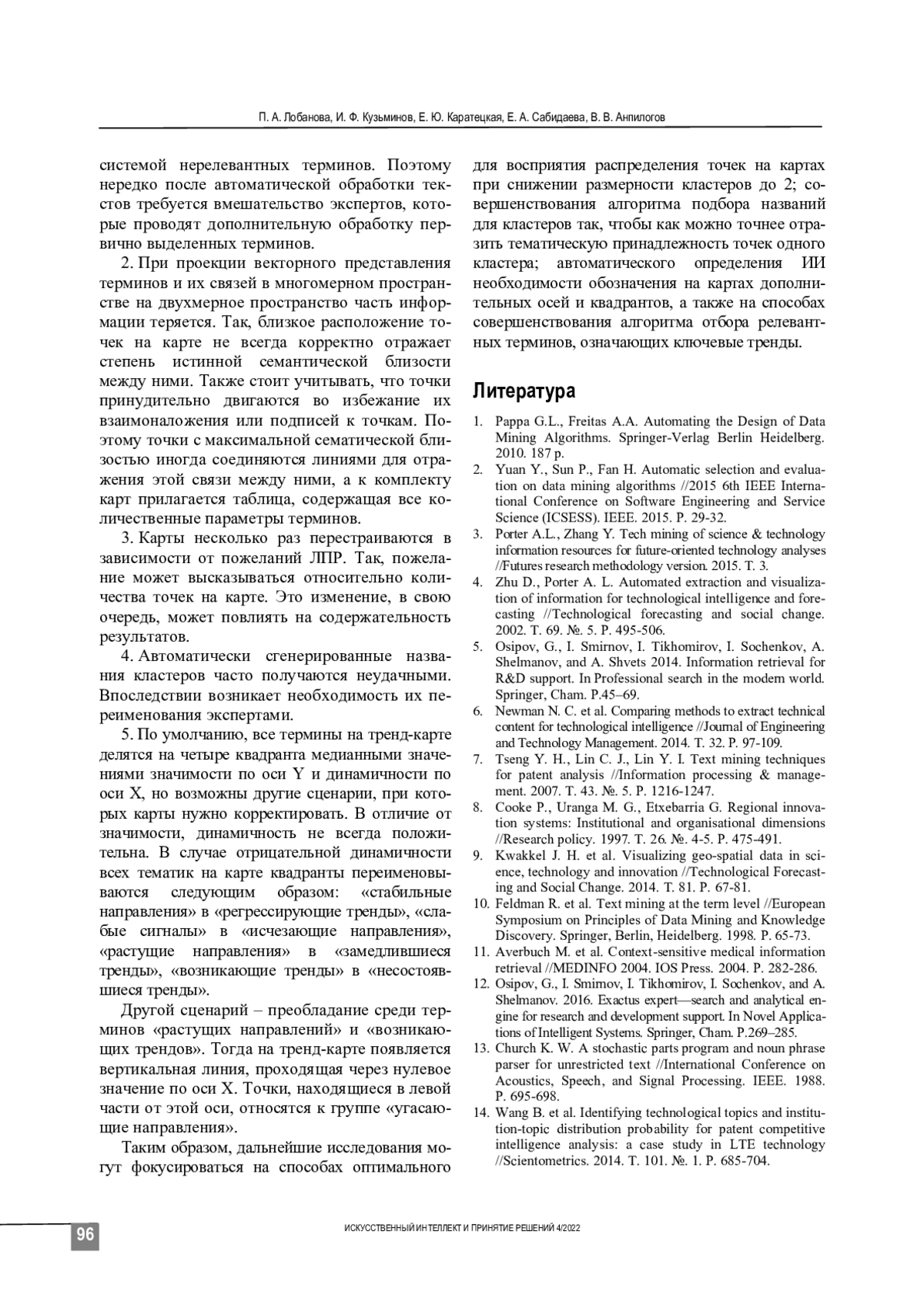 4. Zhu D., Porter A. L. Automated extraction and visualization of information for technological intelligence and forecasting //Technological forecasting and social change. 2002. Т. 69. №. 5. P. 495-506.