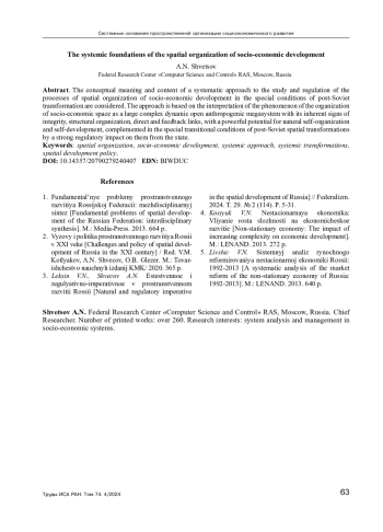 3. Лексин В.Н., Швецов А.Н. Естественное и регулятивно-императивное в пространственном развитии России // Федерализм. 2024. Т. 29. № 2 (114). С. 5-31. EDN: YDHLWV