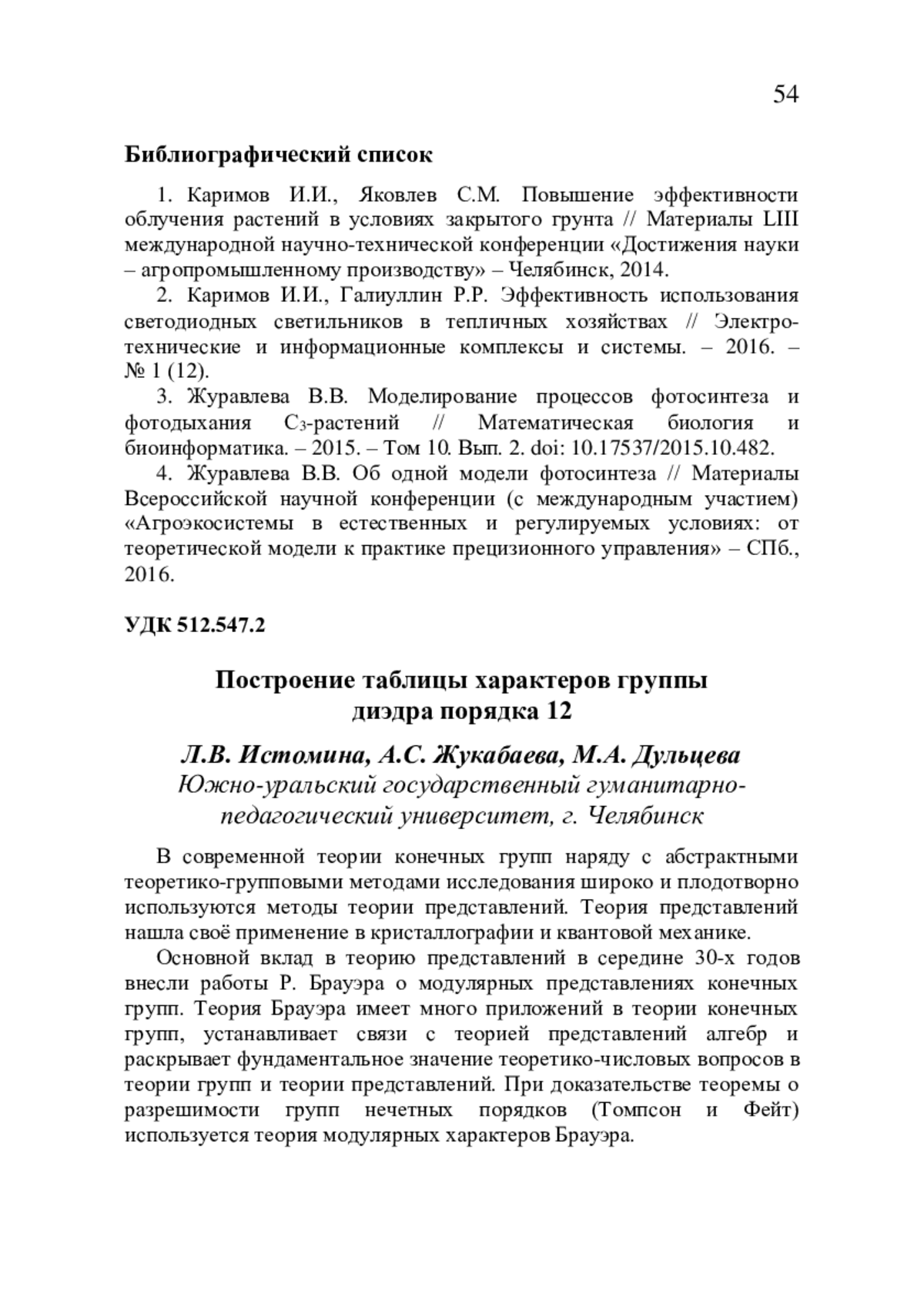 1. Каримов И.И., Яковлев С.М. Повышение эффективности облучения растений в условиях закрытого грунта // Материалы LIII международной научно-технической конференции “Достижения науки - агропромышленному производству” - Челябинск, 2014.