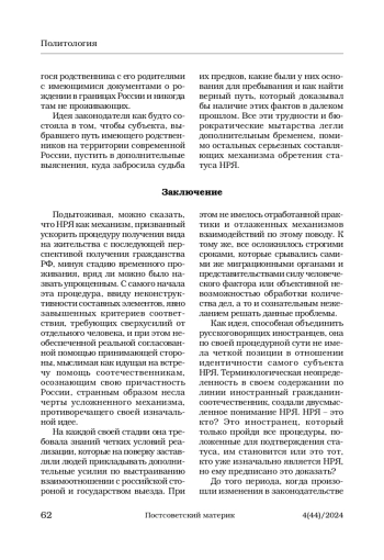 В статье анализируются административно-правовые аспекты регулирования утратившего юридическую силу иммиграционного статуса «носитель русского языка», рассматриваемого как правовой механизм ускоренного обретения гражданства Российской Федерации. Автором утверждается, что сама структура внутренних элементов законодательного закрепления данного миграционного механизма была предложена таким образом, что этапы его реализации создавали комплекс проблем, конструктивного и своевременного решения которых со стороны государства не было. В конечном счете, это привело к утрате инициативы.
