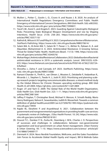 ВАРШНЕЙ С. К., ПРАСАННА Н. К. МЕЖДУНАРОДНЫЙ ДОГОВОР О ГЛОБАЛЬНЫХ ПАНДЕМИЯХ ПЕРЕД ЛИЦОМ БУДУЩИХ ПАНДЕМИЙ // ИНФОРМАЦИЯ И ИННОВАЦИИ. 2024. ТОМ 19, № 4
