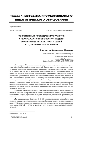 Статья: ОБ ОСНОВНЫХ ПОДХОДАХ К РАЗРАБОТКЕ И РЕАЛИЗАЦИИ ЭКОСИСТЕМНОЙ МОДЕЛИ ВОСПИТАНИЯ СУБЪЕКТНОСТИ ДЕТЕЙ В ОЗДОРОВИТЕЛЬНОМ ЛАГЕРЕ (2024)