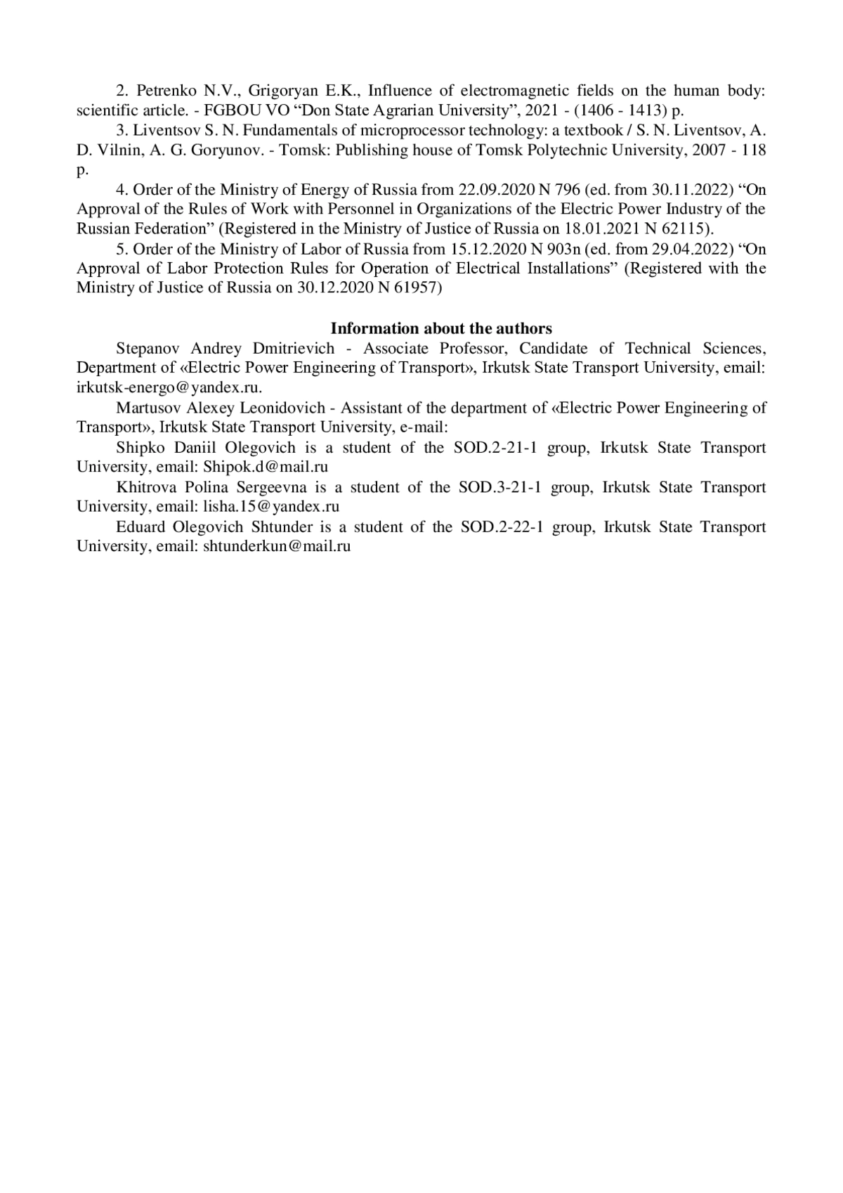- Петренко Н.В., Григорян Е.К., Влияние электромагнитных полей на организм человека: научная статья. – ФГБОУ ВО «Донской государственный аграрный университет», 2021 – (1406 – 1413) с.