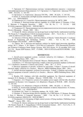 Kushnsrov, V.V. Electrical engineering complex of the new generation airplanes (in Russian) / V.V. Kushnsrov. Kushnsrov // Sensors and systems. - 2002. - № 7. - С. 29 34.