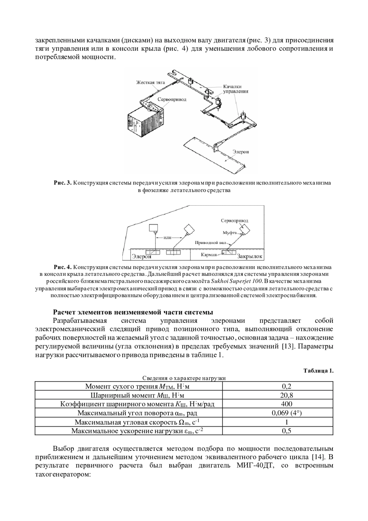 В статье рассматриваются типы приводов и конструкционные особенности элеронов, применяемых в самолетостроении. Приводится расчет элементов неизменяемой части системы (двигатель, редуктор, усилитель мощности).