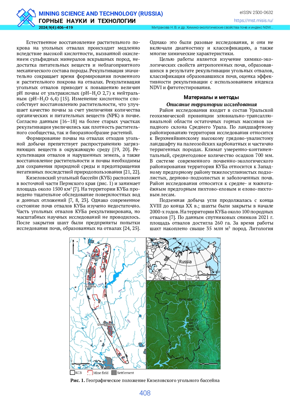 2. Кутепов Ю. И., Кутепова Н. А., Мухина А. С., Мосейкин В. В. Инженерно-геологические и геоэкологические проблемы восстановления нарушенных земель при отвалообразовании на открытой угледобыче в Кузбассе. Горный информационно-аналитический бюллетень. 2022;(5):5–24. https://doi.org/10. 25018/0236_1493_2022_5_0_5 Kutepov Yu. I., Kutepova N. A., Mukhina A. S., Moseykin V. V. Geological, geotechnical and geoecological problems of reclamation of land disturbed by dumping in open pit coal mining in Kuzbass. Mining Informational and Analytical Bulletin. 2022;(5):5–24. (In Russ.) https://doi.org/10.25018/0236_1493_2022_5_0_5