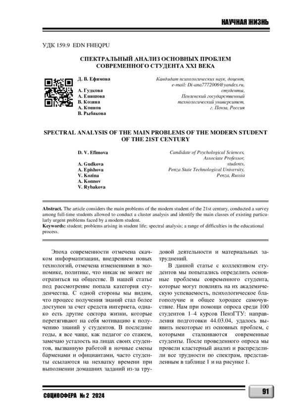 В статье рассмотрены основные проблемы современного студента 21 века, проведенный опрос среди студентов дневной формы обучения позволил провести кластерный анализ и выявить основные классы существующих особо актуальных проблем, с которыми сталкивается современный студент.