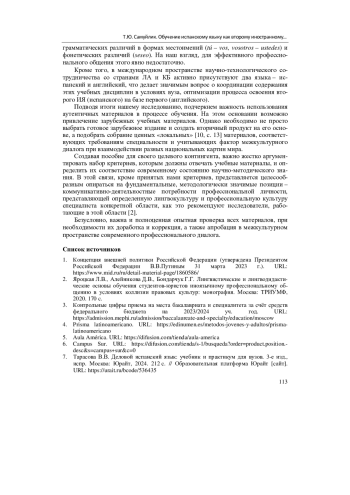 Статья посвящена изучению особенностей программ с искусственным интеллектом в обучении иностранному языку. Целью работы является выявление и описание особенностей программ с искусственным интеллектом при обучении иностранному языку. Основной метод, использованный в исследовании, - описательный (анализ и описание выявленных особенностей). Кроме того, были применены: метод опроса; для сбора, обработки и представления полученных данных количественный метод и методы презентации материала (разработка диаграмм, таблиц). Алгоритм проведенного исследования предполагал: выявление и описание требований к программам на основе искусственного интеллекта; проведение сопоставительного анализа соответствующих программ (GigaChat, Replika, Mondly, Speechling); разработку упражнений с применением программы, наиболее соответствующей выделенным требованиям; проведение опроса обучающихся для сбора статистических данных и подведения итогов апробации программы. Основными требованиями, соответствующими программе на основе искусственного интеллекта, являются: функциональность, удобство использования, оптимальная стоимость, безопасность, своевременный выход обновлений и грамотная техническая поддержка. Авторы описали каждую из отобранных программ с точки зрения соответствия их выделенным требованиям, провели сопоставительный анализ. В результате наиболее оптимальной для апробации была сочтена программа Replika. В ходе обучения участники проходили тему «Tourism» с внедрением программы на основе искусственного интеллекта Replika в процесс урока (10 уроков, длительность - 2 недели). Обучающиеся регистрировались на платформах и работали с программой в рамках урока, выполняли интерактивные задания. Проведенный опрос показал общую удовлетворенность обучающихся в использовании данной программы, что может способствовать повышению мотивации к изучению иностранного языка в будущем.