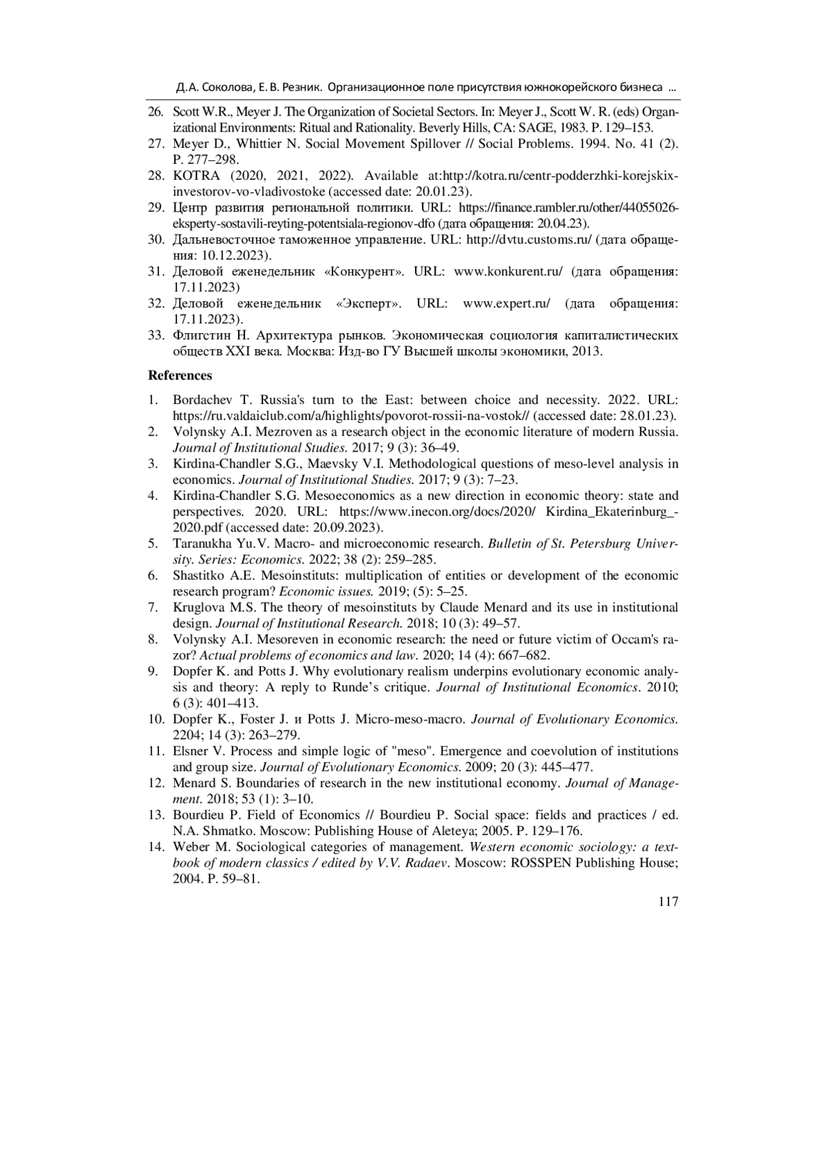 2. Волынский А.И. Мезоуровень как объект исследования в экономической литературе современной России // Journal of Institutional Studies. 2017. Т. 9, № 3. С. 36-49. EDN: ZHYVZR