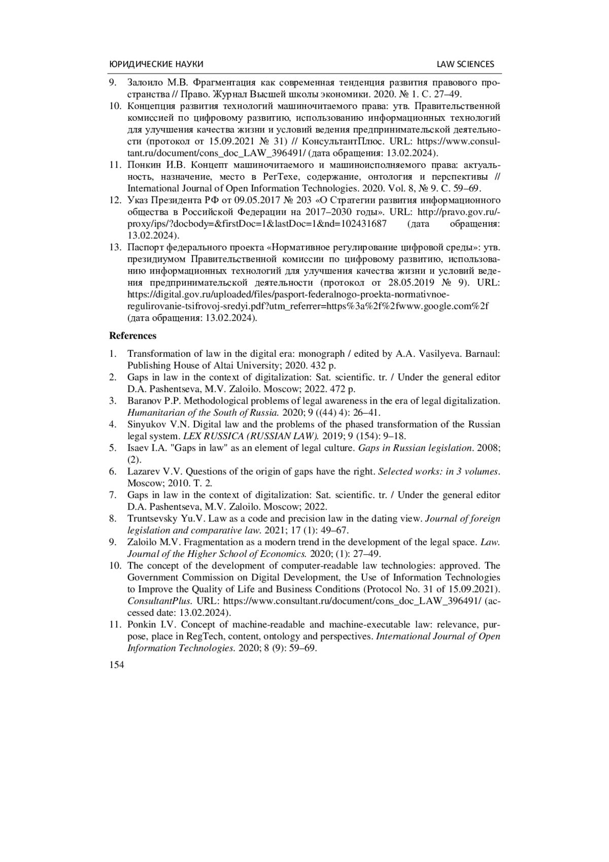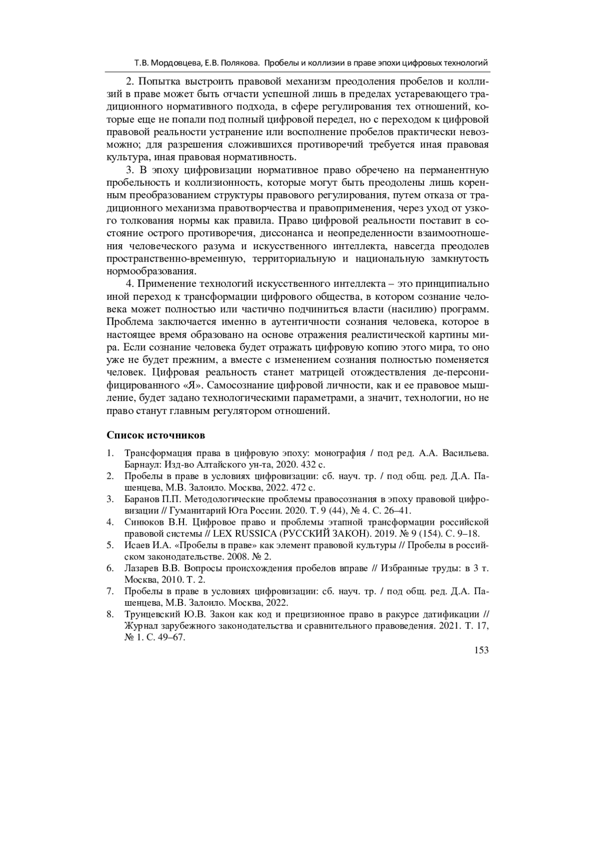 МОРДОВЦЕВА Т. В., ПОЛЯКОВА Е. В. ПРОБЕЛЫ И КОЛЛИЗИИ В ПРАВЕ ЭПОХИ ЦИФРОВЫХ ТЕХНОЛОГИЙ // ТЕРРИТОРИЯ НОВЫХ ВОЗМОЖНОСТЕЙ. ВЕСТНИК ВЛАДИВОСТОКСКОГО ГОСУДАРСТВЕННОГО УНИВЕРСИТЕТА. 2024. Т. 16 № 1 (69)