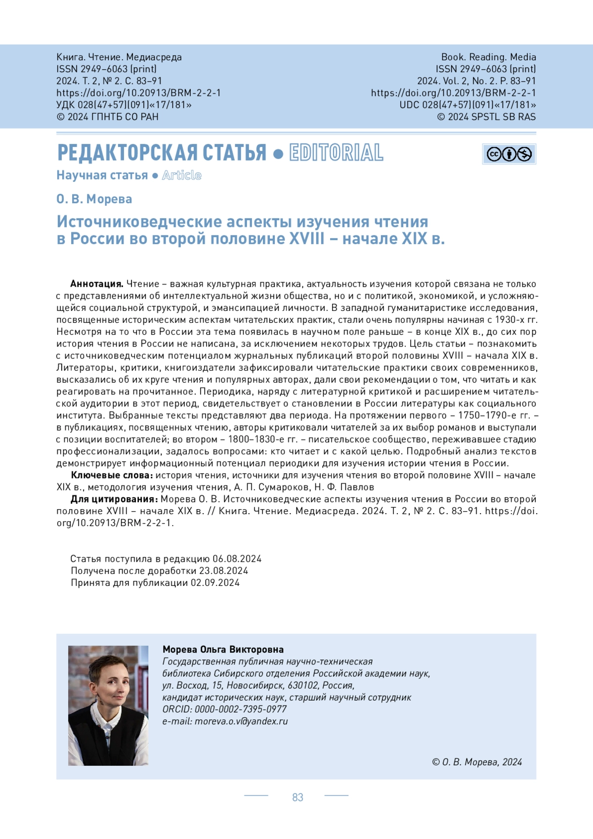 14. Польской С. В. Читатель и чтение в России «долгого» восемнадцатого века // Slověne. 2023. Т. 12, № 1. C. 344-362.