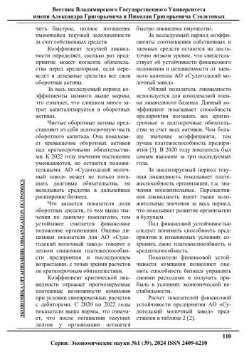 В статье рассмотрены понятия ликвидности и платежеспособности. Проведен анализ финансового состояния организации. В заключительной части статьи представлены рекомендации, направленные на повышение эффективности функционирования компании.