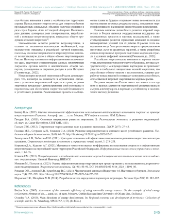 1. Bekker N.A. (2007). Otsenka ekonomicheskoi effektivnosti ispol’zovaniya vozobnovlyaemykh istochnikov energii: na primere vetroenergetiki Germanii. Avtoref. dis. … k.e.n. Moskva, RGU nefti i gaza im. I.M. Gubkina.