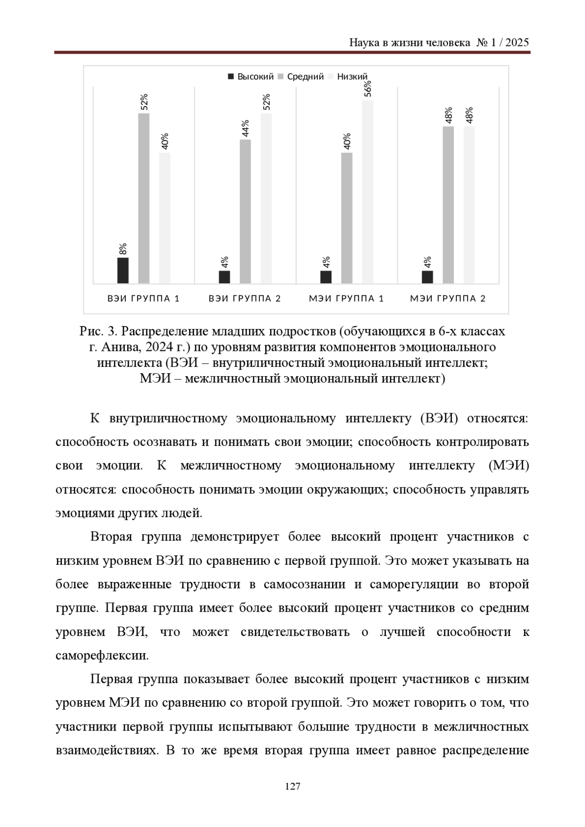 3. Клыпа О.В., Стежко П.А. Анализ проблемы эмоционального интеллекта современных подростков // Проблемы современногопедагогического образования. ‒ 2019. ‒ № 64-3. ‒ С. 297-301. ‒ U