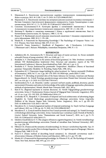 9. Мурашова Е. А. Лексические прагматические маркёры темпорального позиционирования // Язык и культура. 2015. № 2 (30). С. 64-75. https://doi.org/10.17223/19996195/30/7.