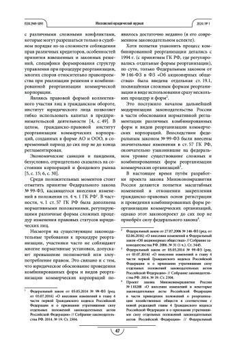 15. Путилина Е. А. Смешанная реорганизация юридического лица // Тенденции развития науки и образования. 2021. № 72-6. С. 110-112.