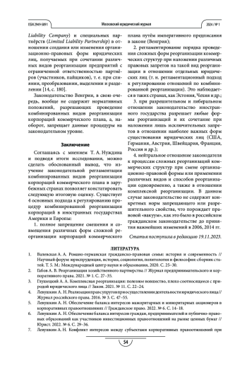 12. Нуждин Т. А. Комбинированная реорганизация юридических лиц // Право. Журнал Высшей школы экономики. 2018. № 1. С. 133-157.