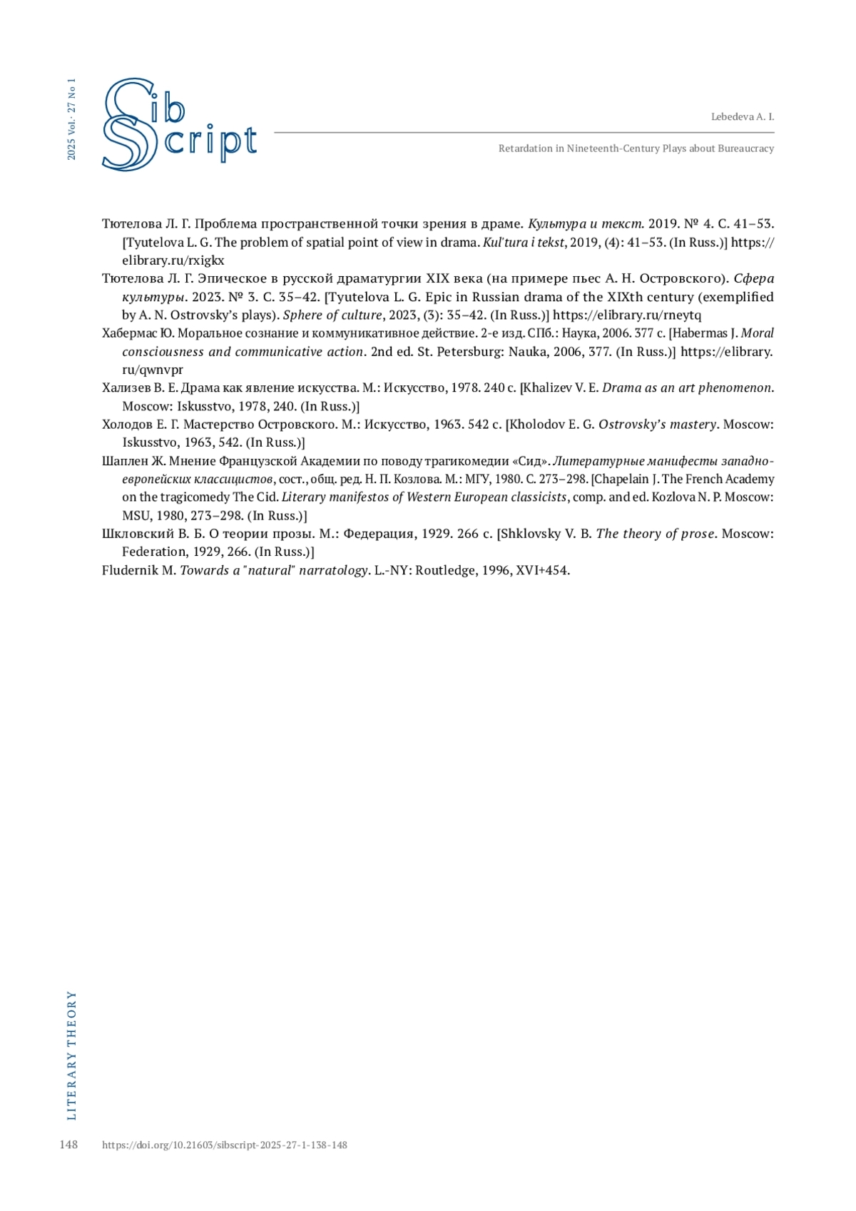 13. Николина Н. А. Средства театрального кода и их функции в пьесах А. Н. Островского. Русский язык в школе. 2018. Т. 79. № 4. С. 48-52. DOI: 10.30515/0131-6141-2018-79-4-48-52