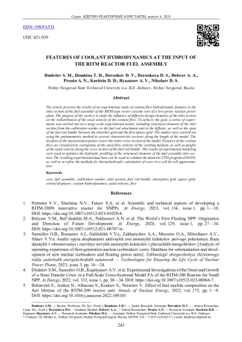 1. Петрунин В.В., Шешина Н.В., Фатеев С.А., Кураченков А.В., Щекин Д.В., Брыкалов С.М., Безруков А.А. Научно-технические аспекты создания инновационной реакторной установки РИТМ-200Н для АСММ. Атомная энергия, 2023, т. 2, с. 134, вып. 1, с. 3-10. EDN: WWOGWS