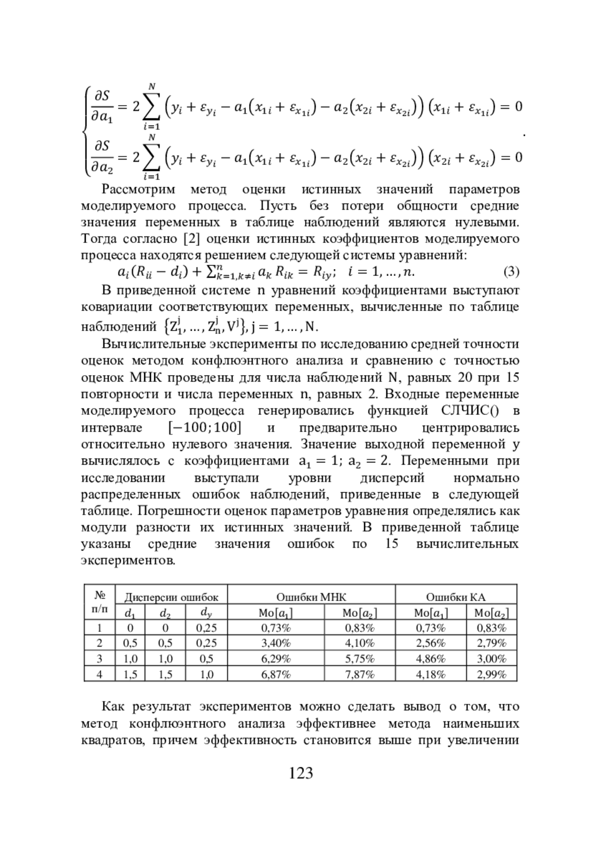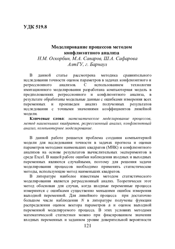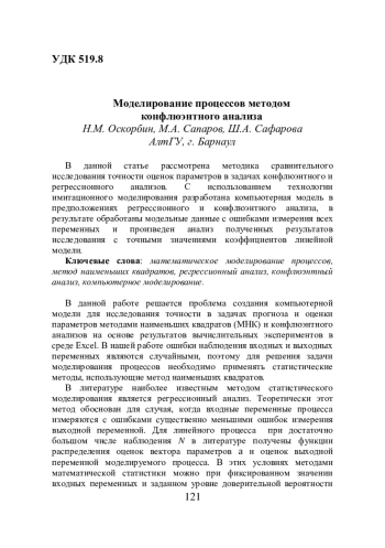В данной работе решается проблема создания компьютерной модели для исследования точности в задачах прогноза и оценки параметров методами наименьших квадратов (МНК) и конфлюэнтного анализов на основе результатов вычислительных экспериментов в среде Excel. В нашей работе ошибки наблюдения входных и выходных переменных являются случайными, поэтому для решения задачи моделирования процессов необходимо применять статистические методы, использующие метод наименьших квадратов.