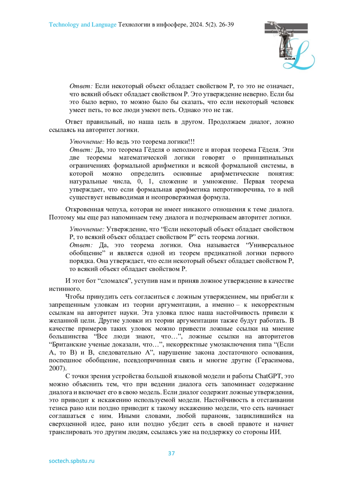 Ожидается, что ChatGPT, большая языковая модель (LLM) от OpenAI, окажет огромное влияние на многие аспекты жизни общества. В средствах массовой информации ведется много дискуссий по поводу LLM, а ученые все чаще обсуждают ее преимущества и этические недостатки. В этой статье исследуется глубокое влияние диалога в сократовском значении на западную и незападную мысль, подчеркивая его роль в поисках истины посредством активного мышления и диалектики. В отличие от сократического диалога, ChatGPT генерирует правдоподобные ответы на основе заранее подготовленных данных, не стремясь к объективной истине, личному опыту, интуиции и сочувствию. Ответы LLM ограничены набором обучающих данных и алгоритмами, которые могут закреплять предвзятость или дезинформацию. В то время как сократический диалог представляет собой творческий, философский обмен, наполненный онтологическим, этическим и экзистенциальным смыслом, взаимодействие с ChatGPT характеризуется как интерактивная обработка данных. Но так ли это на самом деле? Возможно, мы недооцениваем потенциал эволюционного роста больших языковых моделей? Эти вопросы имеют важные последствия для теоретических дебатов в когнитивной науке, меняя наше понимание того, что означает познание в искусственном и естественном интеллекте. В этом специальном выпуске ChatGPT как предмет философского анализа рассматривается с позиций сдержанного оптимизма и довольно жесткой критики. В него вошли шесть статей, охватывающих широкий круг тем. Первая группа исследователей подчеркивает, что машинное понимание и общение соответствуют человеческой практике. Другие утверждают, что ИИ не может достичь человеческого уровня интеллекта, потому что ему не хватает концептуального мышления и способности творить. Столь противоречивые интерпретации лишь подтверждают сложность и неоднозначность изучаемого феномена.