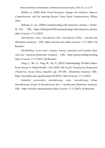 7. Hohman, F., etc. (2020) Communicating with Interactive Articles // Distill., № 9(5). URL: https://distill.pub/2020/communicating-with-interactive-articles/ (date of access: 17.12.2023).