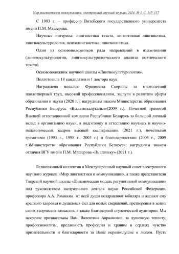 16-17 января 2024 года учреждение образования «Витебский государственный университет имени П. М. Машерова» (Республика Беларусь) проводил Международный круглый стол «Теоретические проблемы и прикладные аспекты лингвистики XXI-го века».